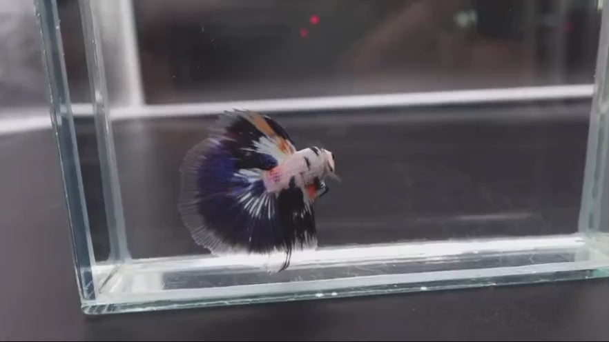 As with all Koi bettas, pattern development may continue over time, making each fish visually unique. Its halfmoon form allows confident swimming and active behaviour.